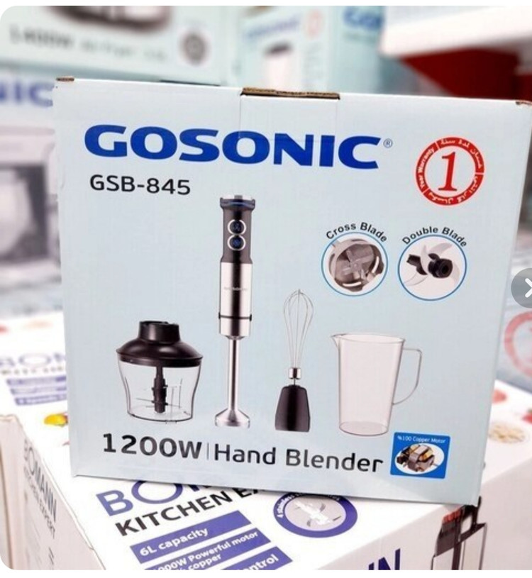 گوشتکوب برقی ۳ کاره گاسونیک مدلGSB-845 دارای موتور پرقدرت ۱۲۰۰ واتی سیم پیچ موتور از جنس مس دارای محفظهی خردکن،محفظهی شیک گوشتکوب و سری همزن