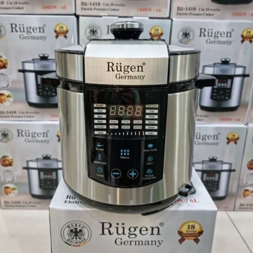 زودپز و پلوپز روگن مدل RU-1415 دارای 14 منوی پیش فرض ظرفیت قابلمه: 6 لیتر توان مصرفی: 1000 وات قابلیت برنامهریزی دستی: دارد دیگ قابلجداشدن: دارد جنس قابلمه: گرانیت درجه یک