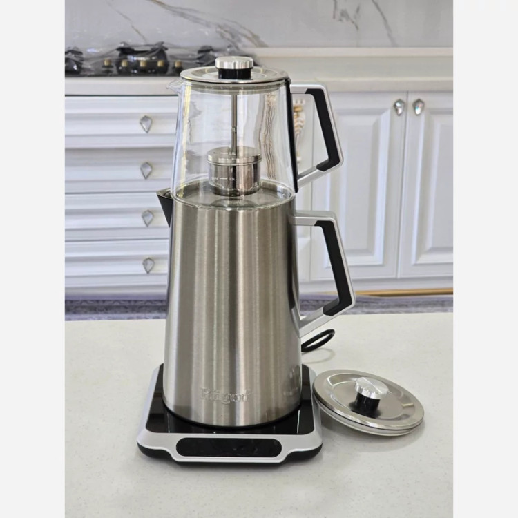 چای ساز روگن مدل Ru-1515 ظرفیت ۲ لیتر با کتری استیل
