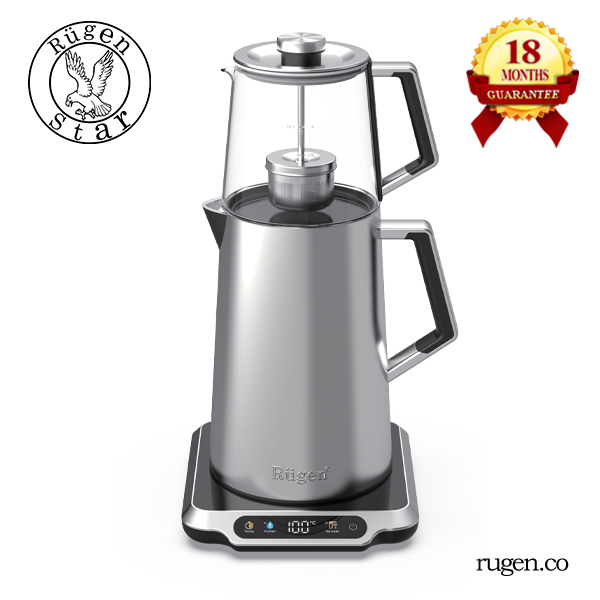 چای ساز روگن مدل Ru-1515 ظرفیت ۲ لیتر با کتری استیل