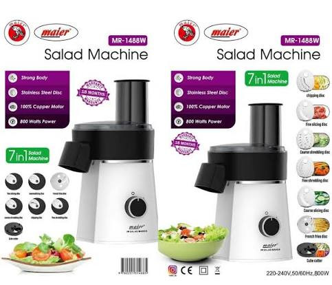 5 عدد هفت تیغه (5 تیغه سالاد + 1 تیغه مخصوص سالاد شیرازی (نگینی) + دیسک خلال سیب زمینی)